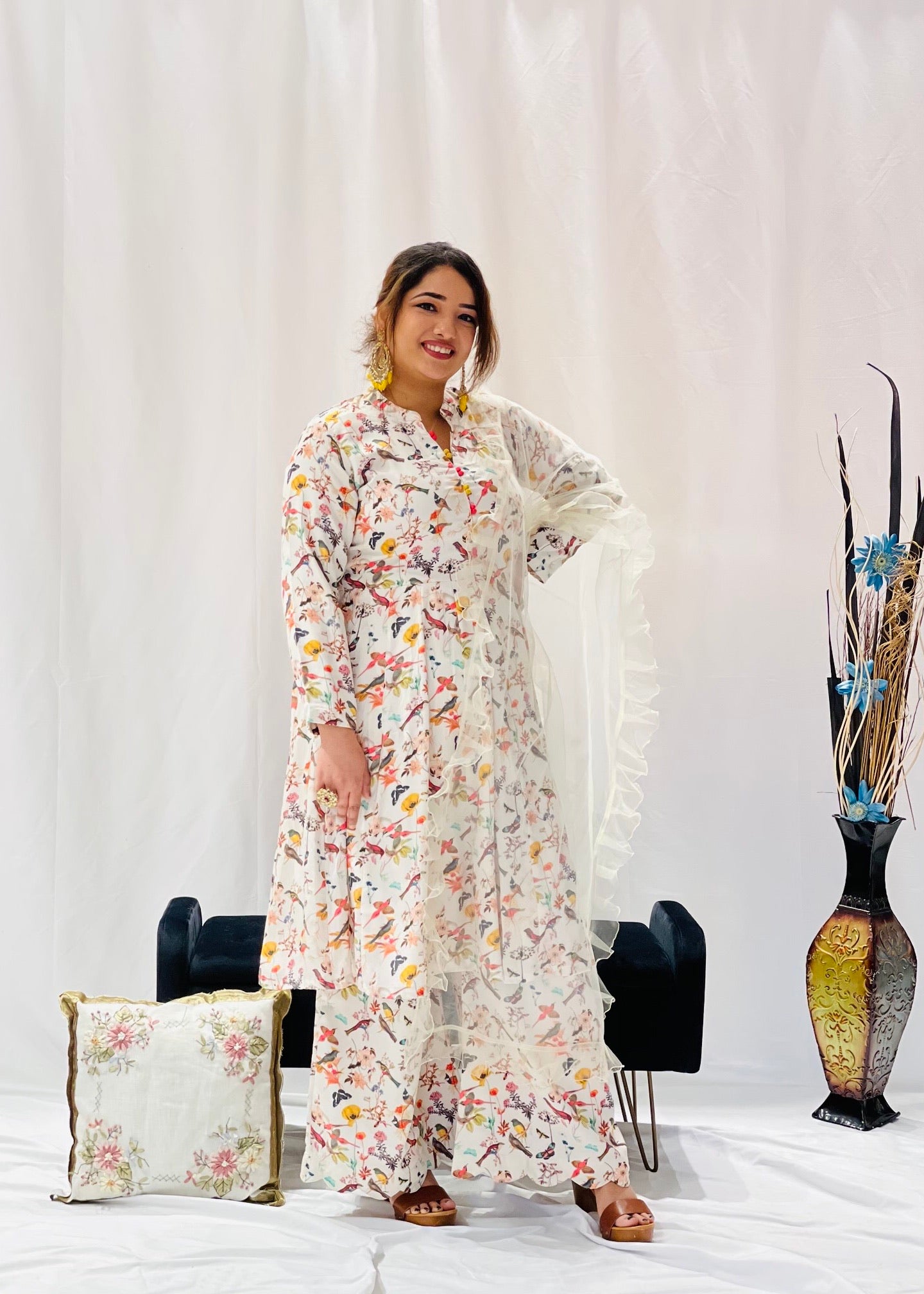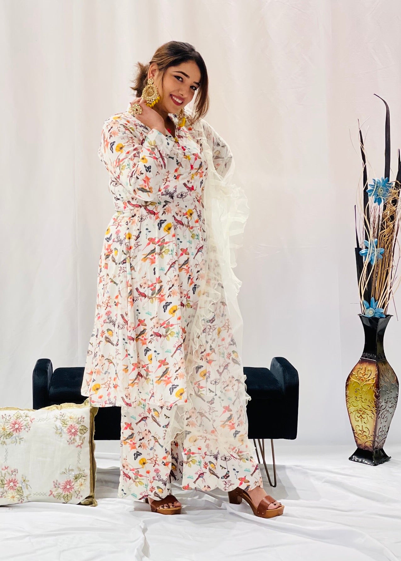 Printed Short Anarkali Suit with Plazzo