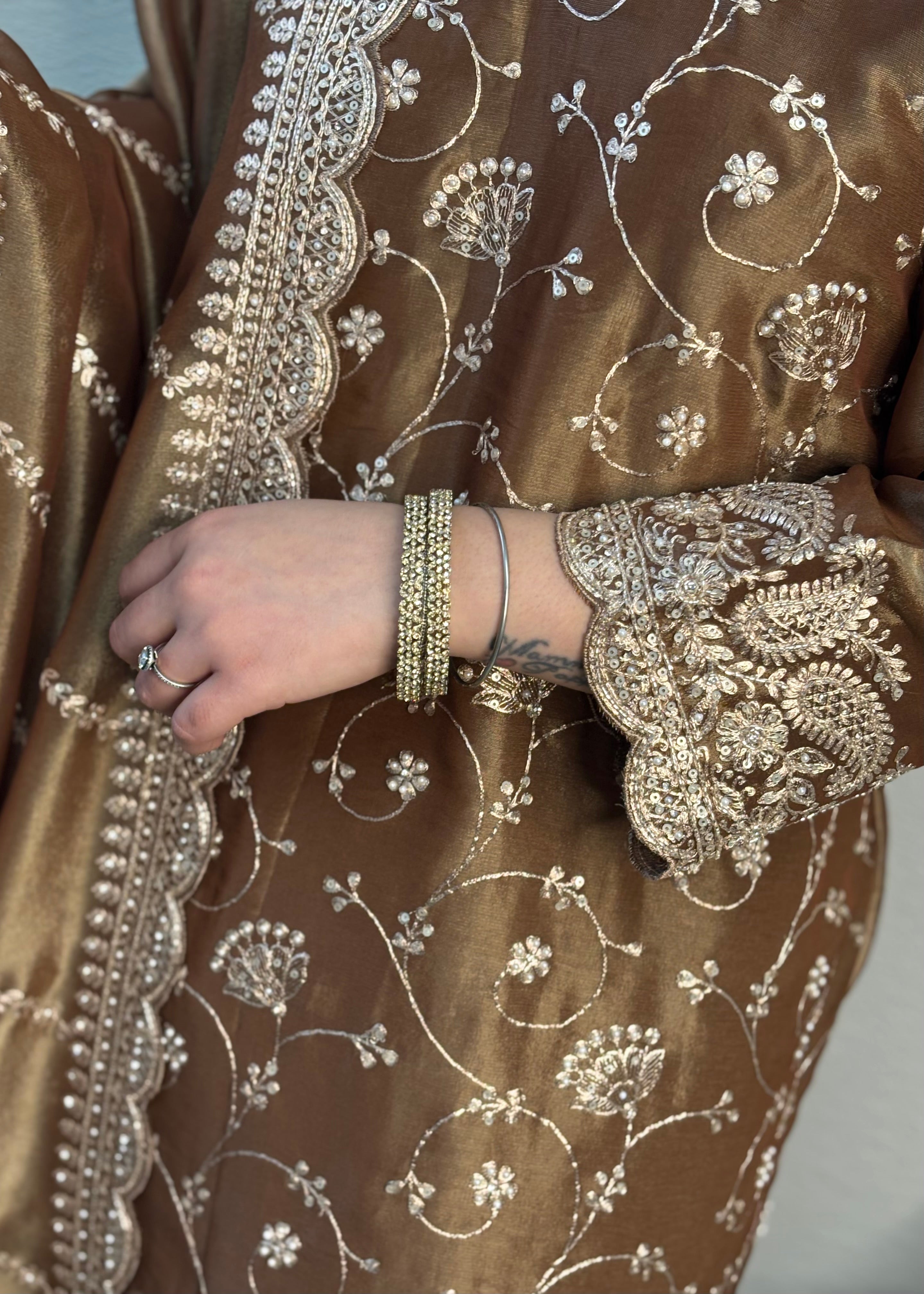 • Kurta & Dupatta: Pure Tissue for that royal, shimmering finish.
