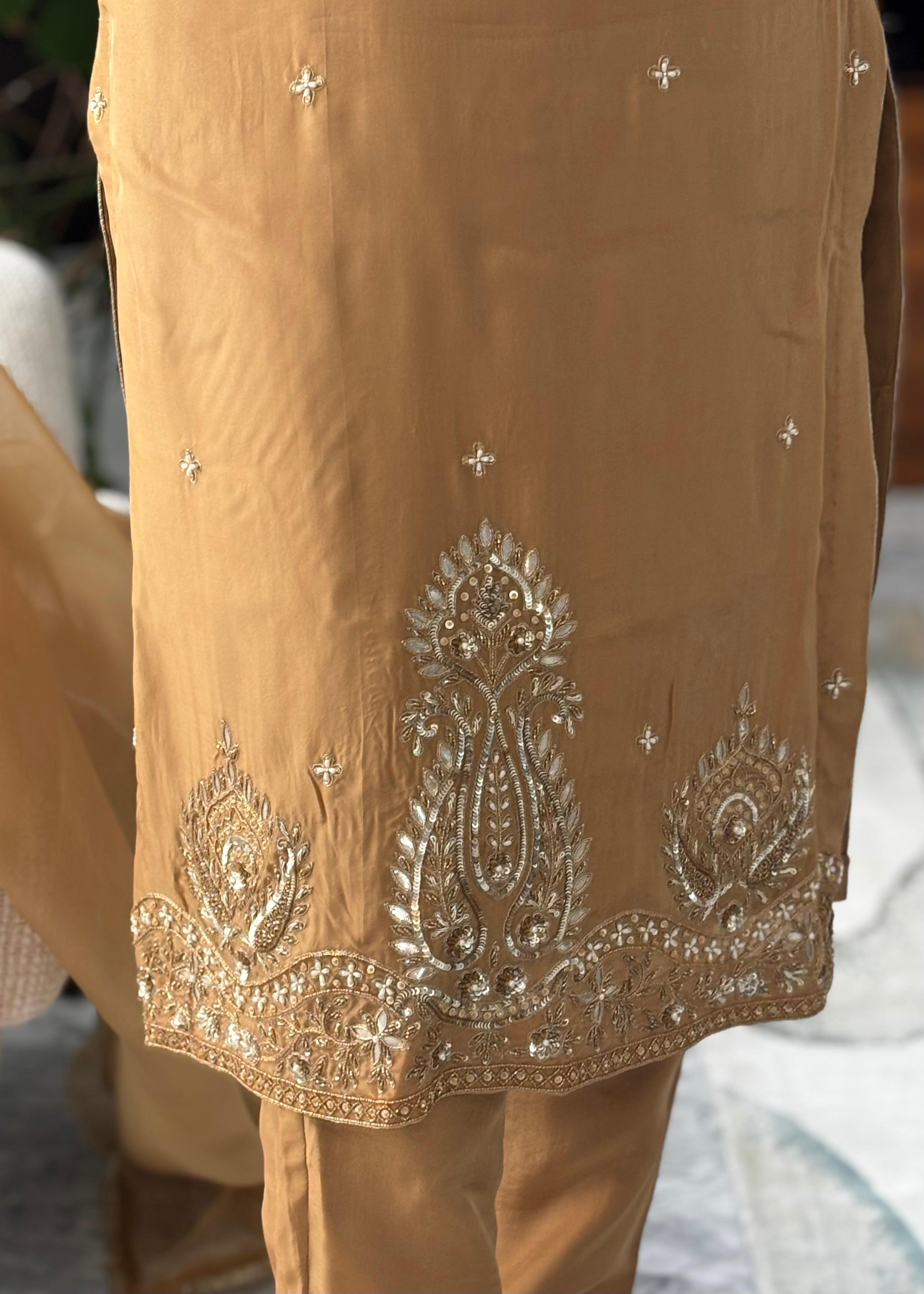 Hand work Golden brown trouser suit