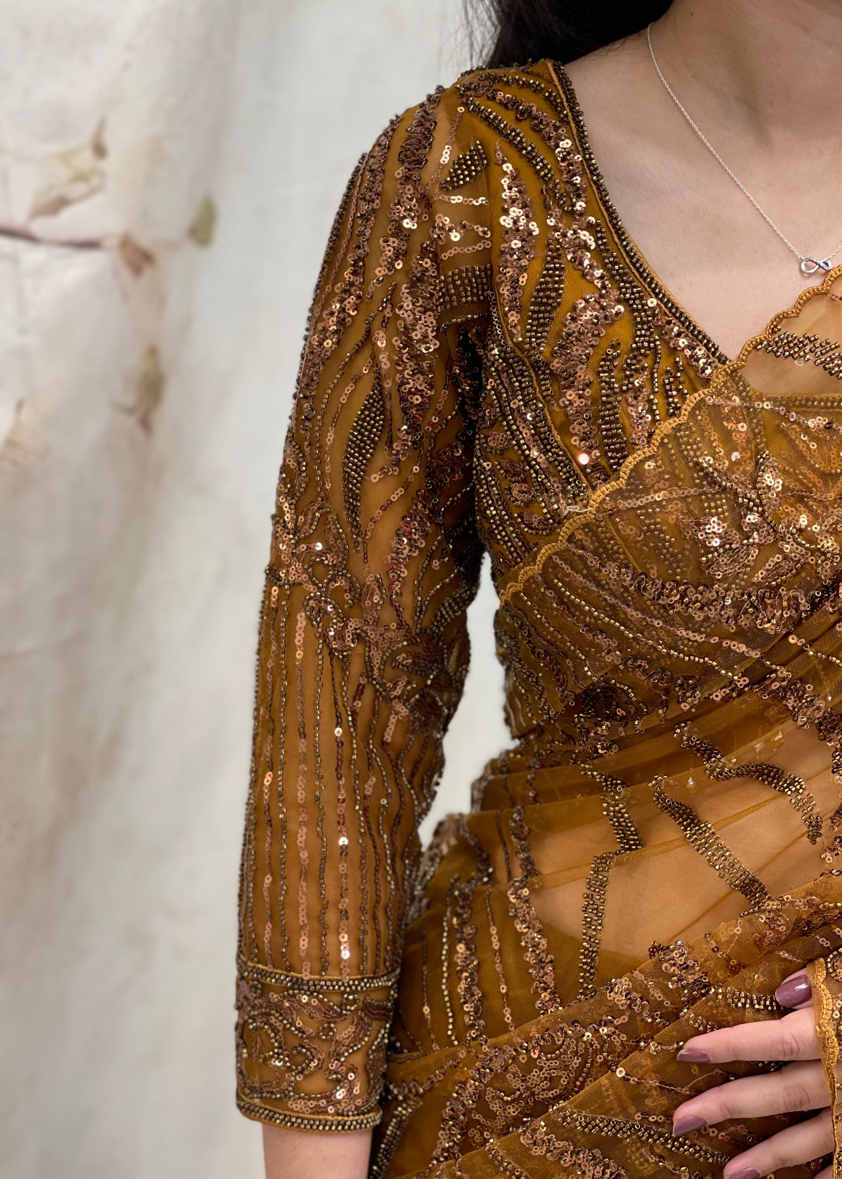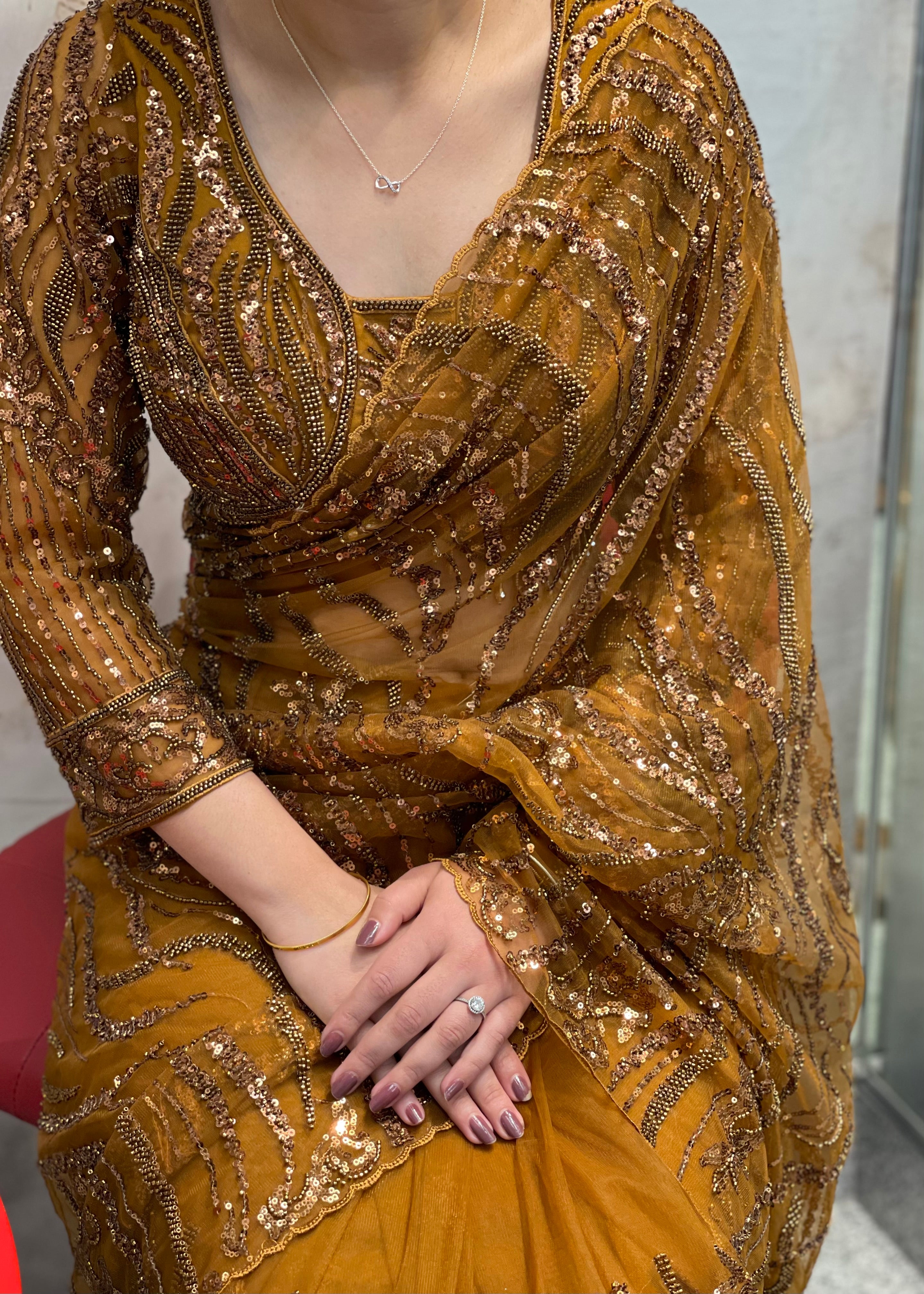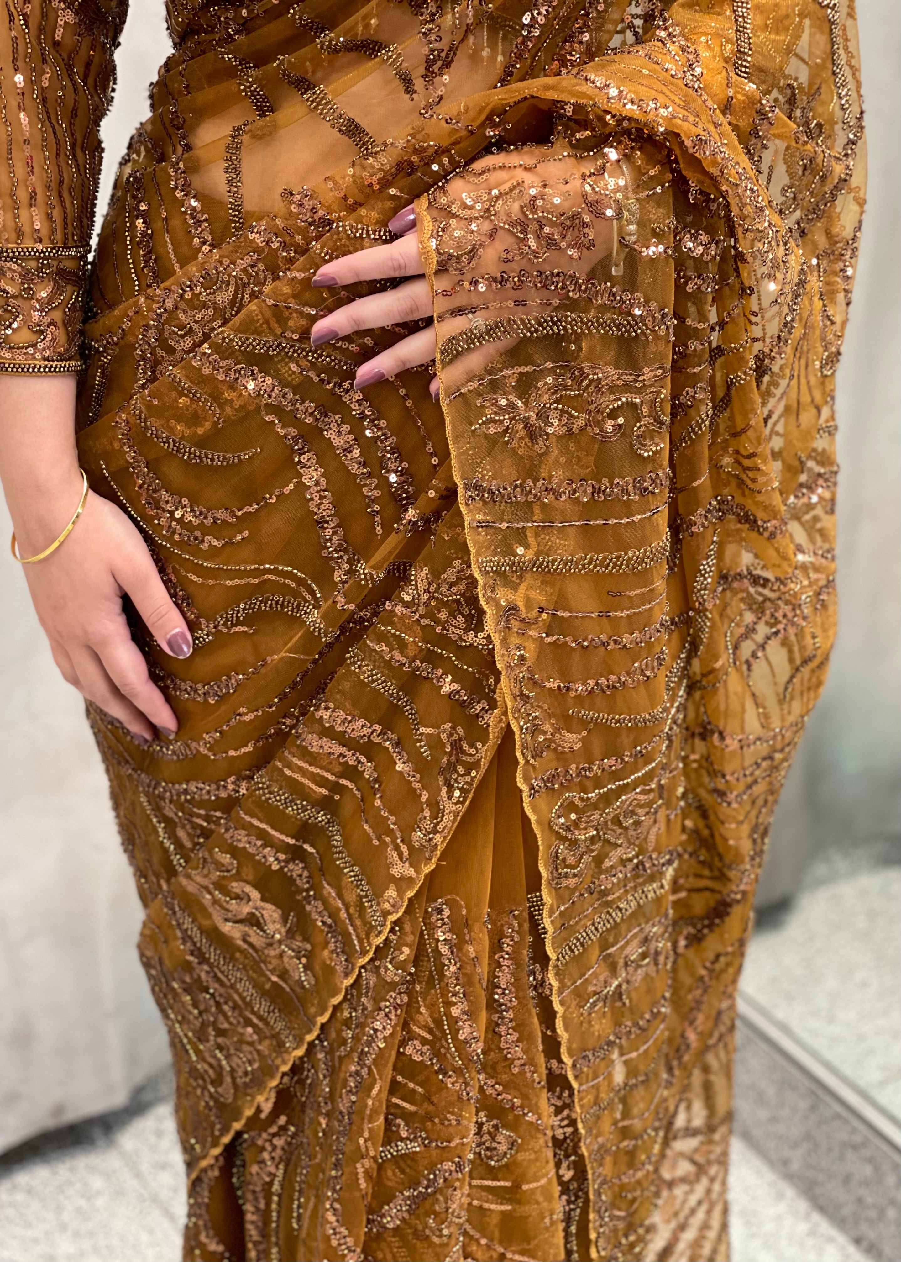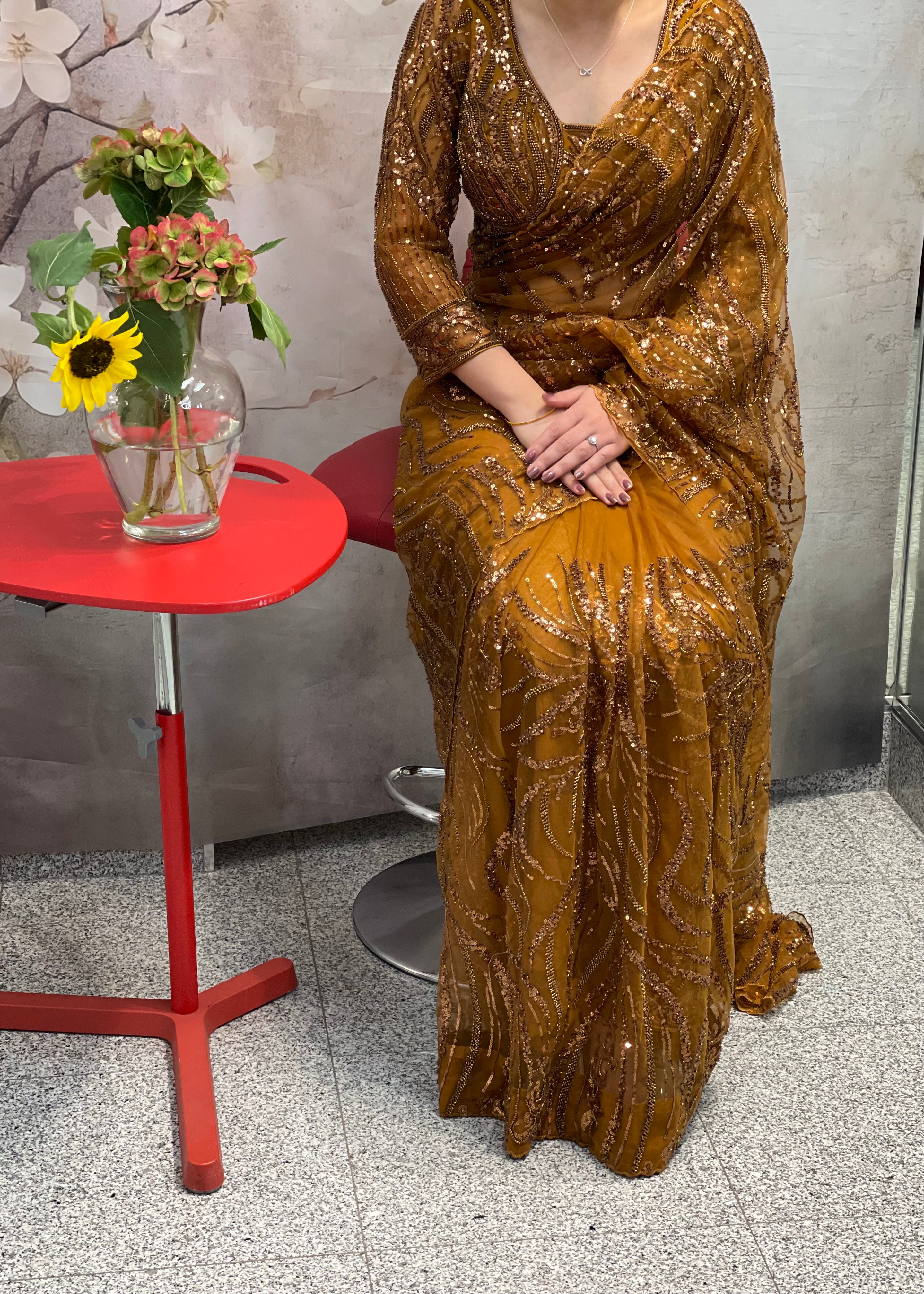 Fully embroidered Saree in Sequence style with fully embroidered blouse in size small.