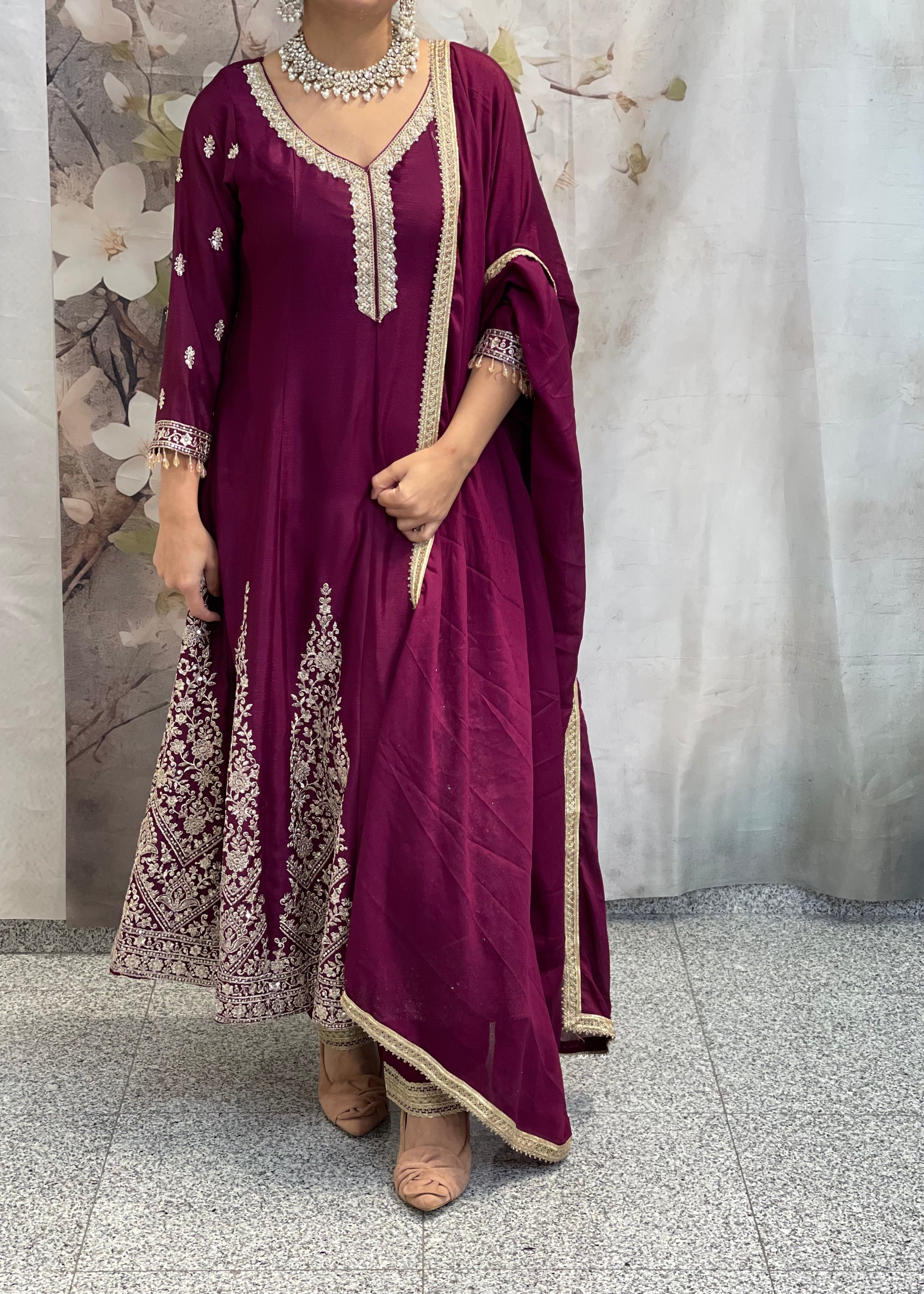 Wine Anarkali Suit